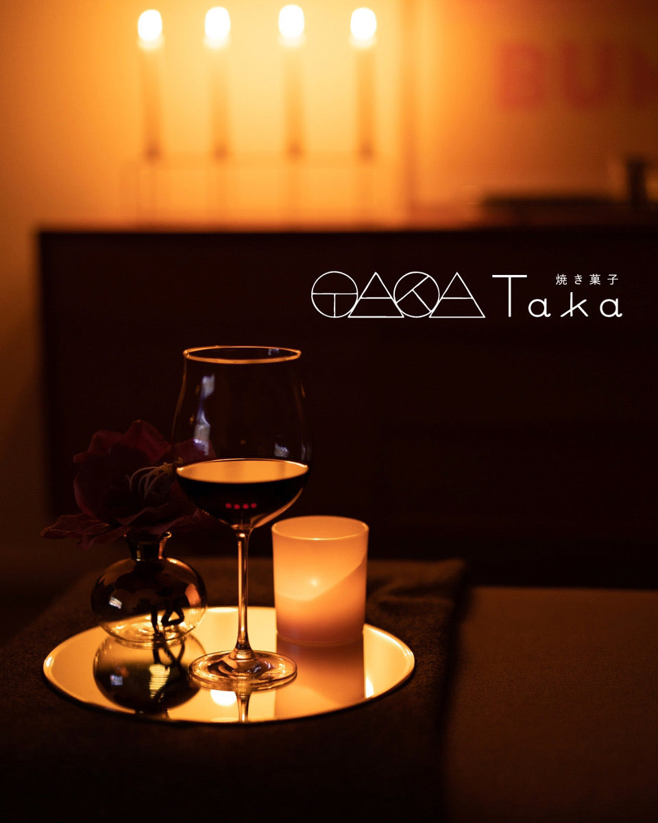 お気に入りのグラスにお酒を注ぎ、そっと寄り添うのは、Takaの焼き菓子。