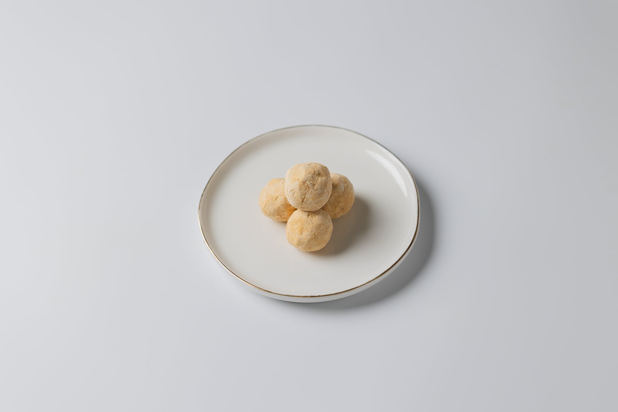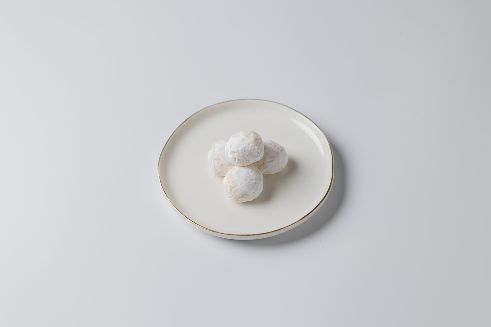 ブールドネージュはフランス語で「雪の球」という意味を持つ焼き菓子。柔らかな雪のように繊細で、口どけの良いブールドネージュは、上質なバターとアーモンドパウダーを使用し、一つひとつ手作りで丁寧に焼き上げます。カリフォルニア産のアーモンドスライスを砕いて混ぜ込み、焼き上げた後には粉砂糖をまぶして仕上げました。