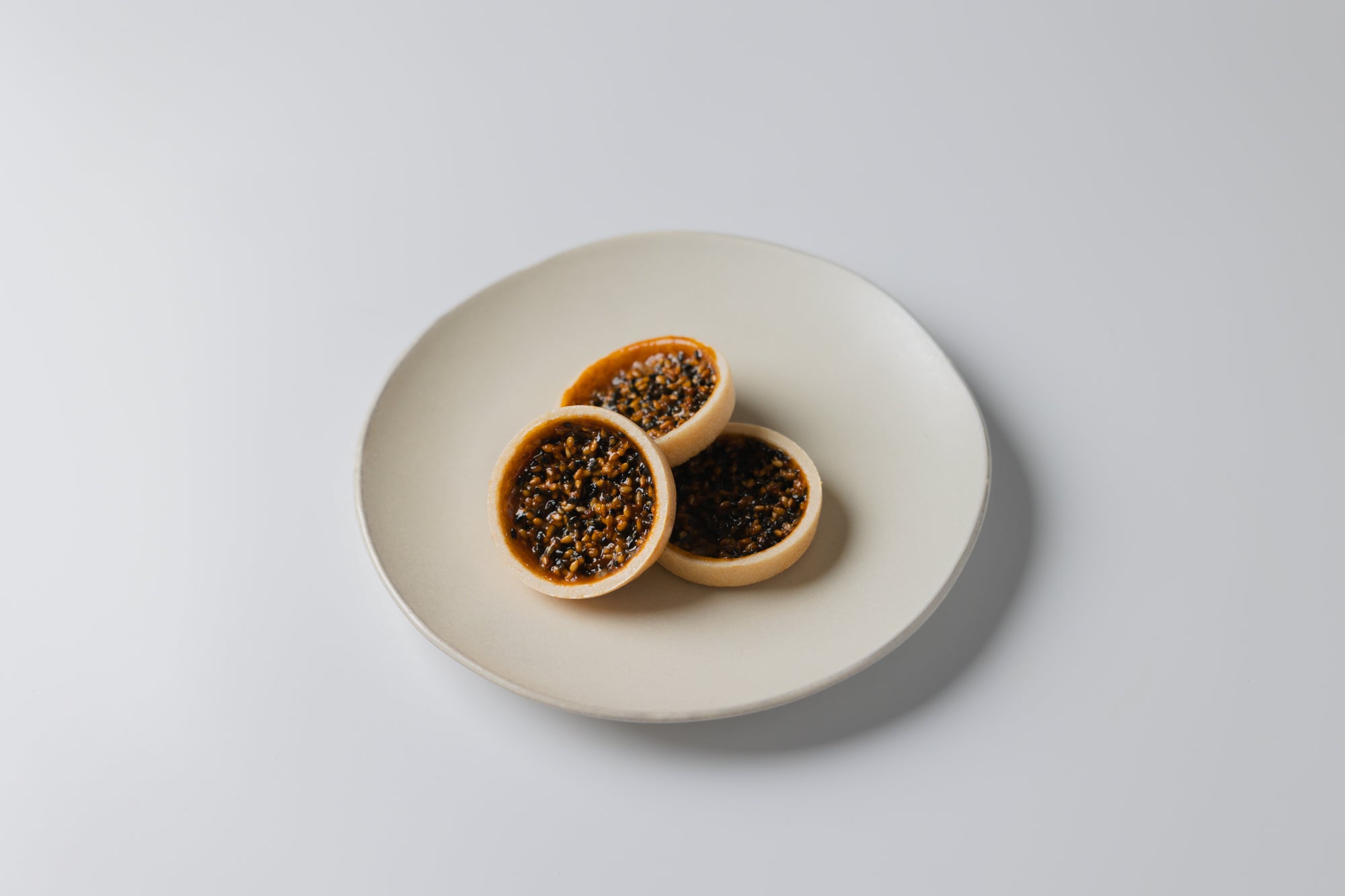 和のテイストを取り入れたフロランタン。最中の皮の食感とカリフォルニア産のアーモンドのスライスを使用した香ばしいキャラメルがマッチします。